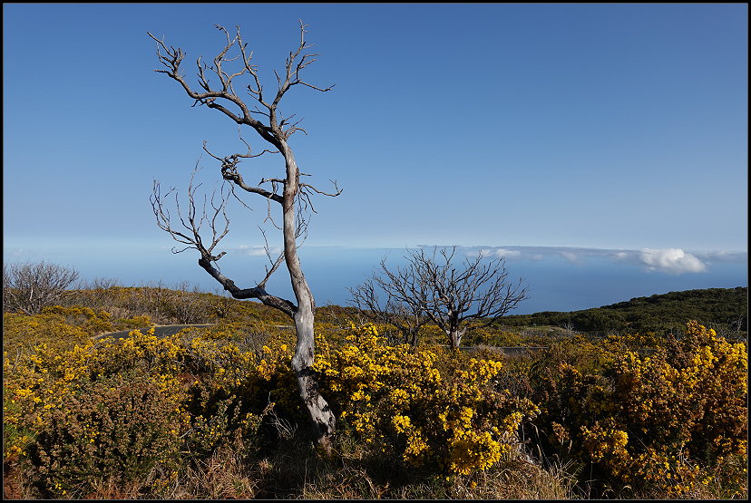 Auch wir bahnten uns den Weg über Stock und Stein zwischen blühendem Ginster und verbrannten Sträuchern. Sie waren noch die letzten Überbleibsel vom großen Feuer 2020. Deshalb wurde dort auch alles renoviert.