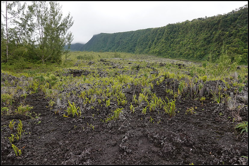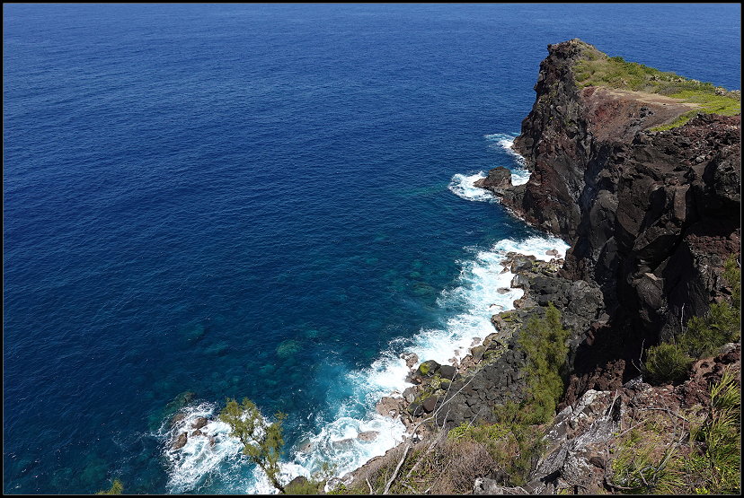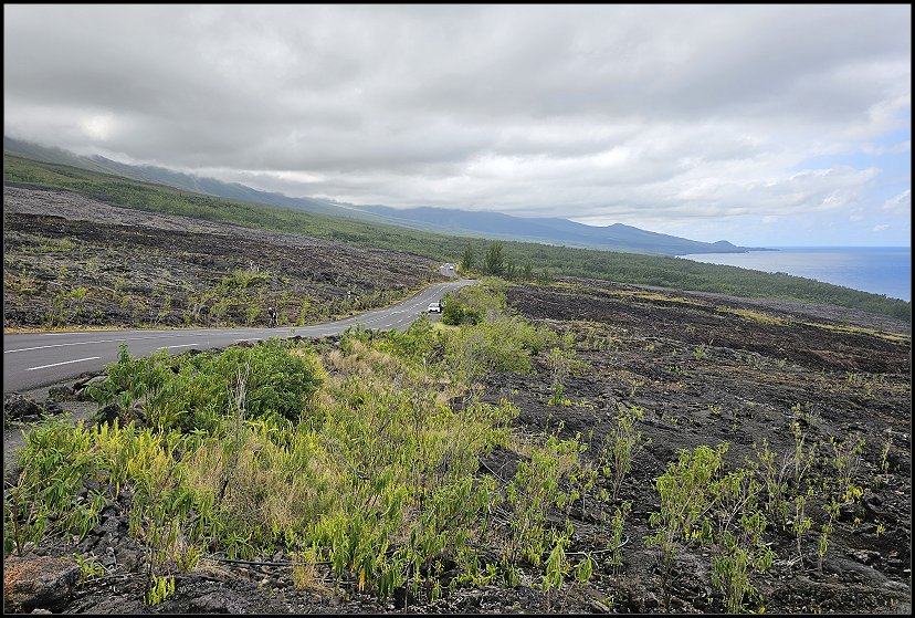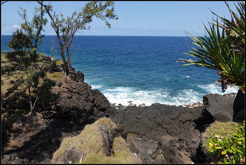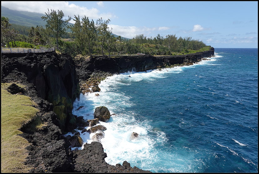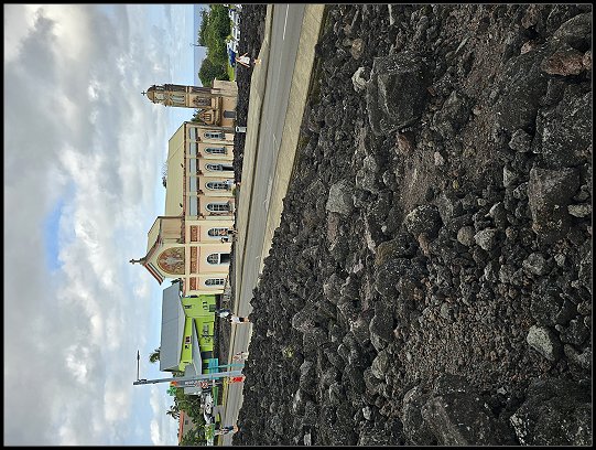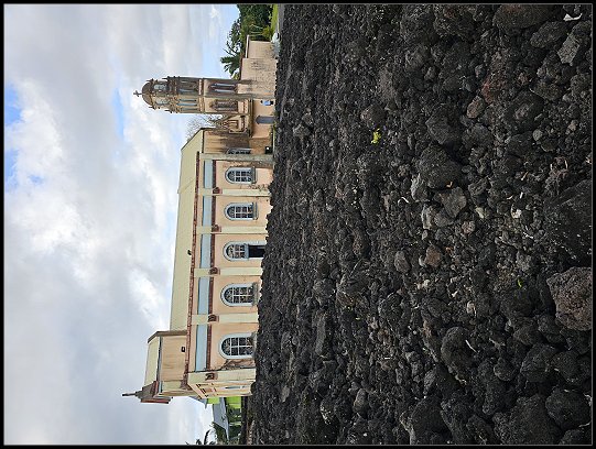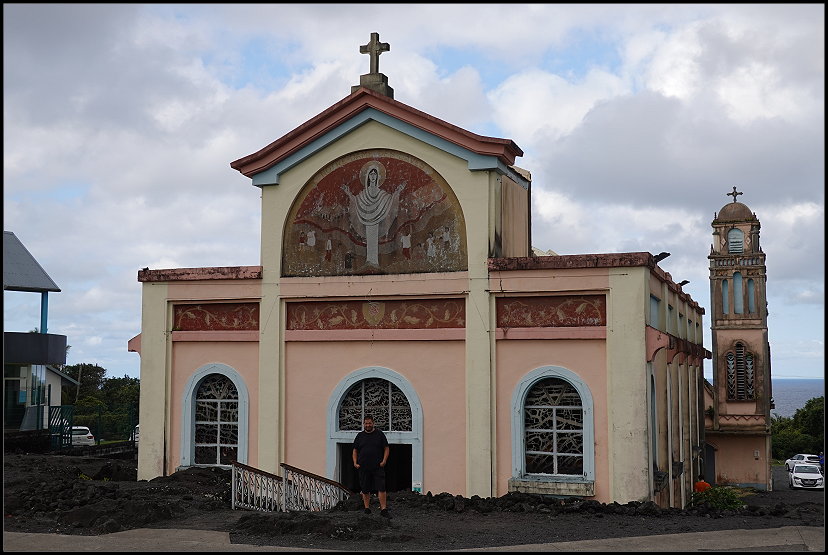 Um 16:00 Uhr erreichten wir die Notre-Dame des Laves, unseren letzten Sightseeing-Spot des Tages. Die kleine katholische Kirche wurde durch ein Wunder bekannt. 1977 wurde sie bei einem Vulkanausbruch des Piton de la Fournaise fast vollständig von Lava umflossen, blieb jedoch unversehrt. Die Lava stoppte direkt vor der Eingangstür der Kirche, was von den Einwohnern als göttliches Zeichen interpretiert wurde. Heute gilt die Notre-Dame des Laves als Symbol des Glaubens und als beliebte Pilgerstätte auf der Insel.