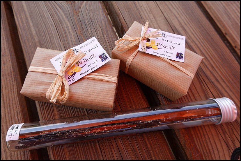 An einem kleinen Vanille-Stand kauften wir Vanille-Seife, eine kristallisierte Vanilleschote, und Hase trank einen Vanille-Kaffee. Ich verzichtete mal lieber noch. Kristallisierte Vanille ist übrigens ein hochwertiges Produkt, das aufgrund der zufälligen Kristallbildung auf der Oberfläche der Vanilleschoten als besonders aromatisch gilt. Diese Kristalle bestehen aus Vanillin, dem Hauptaromastoff der Vanille.