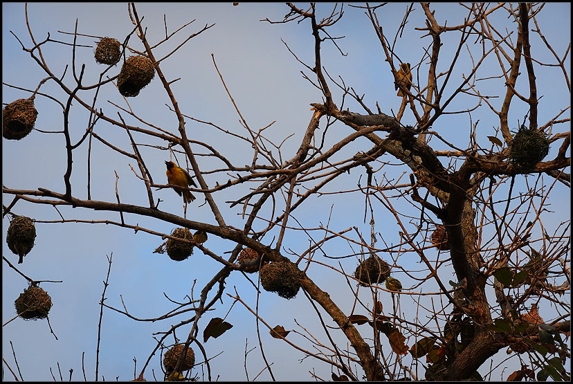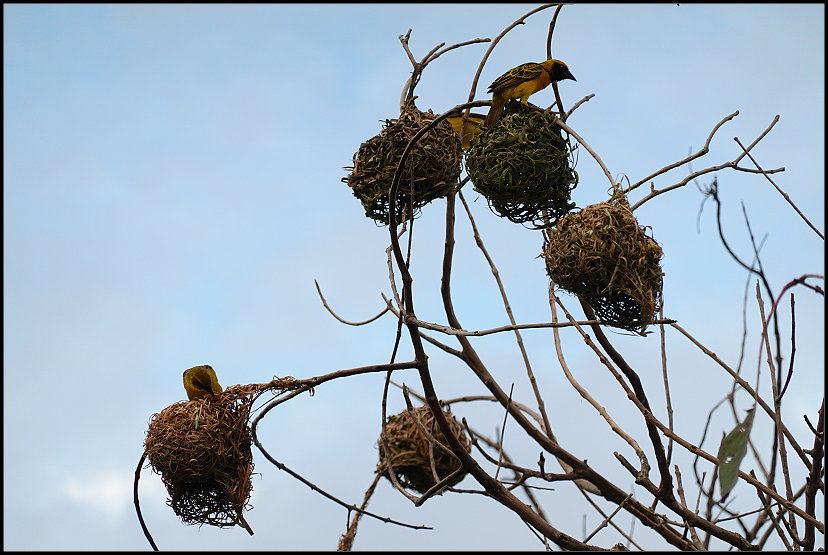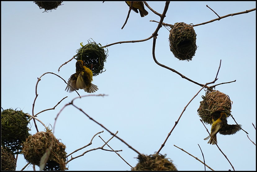 Als Überbleibsel aus der englischen Kolonialzeit gilt auf Mauritius immer noch der Linksverkehr. Als jahrelange Schottlandurlauber sind wir das ja gewohnt und haben überhaupt kein Problem damit. Nur wusste mein Hase das nicht und war im ersten Moment mit dem Lenkrad auf der rechten Seite etwas überfordert. Da gab ich ihm mal etwas Zeit und machte ein paar Bilder der Webervögel, die dabei waren, ihre Nester in einem Baum zu bauen.