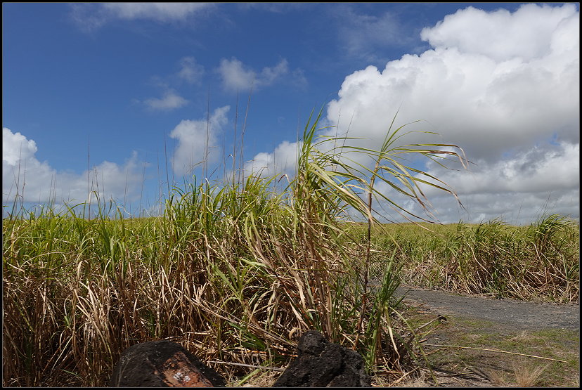 Nachdem wir uns etwas frisch gemacht hatten, düsten wir um kurz nach 12:00 Uhr wieder los. Vorbei an riesigen Zuckerrohrfeldern, Bananenplantagen, Chillifeldern und kleinen Verkaufsständen ging es einmal quer über die Insel.