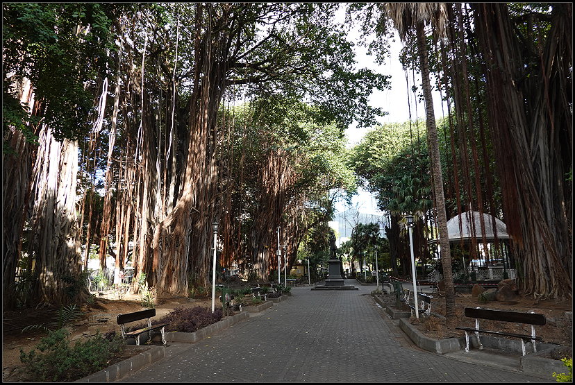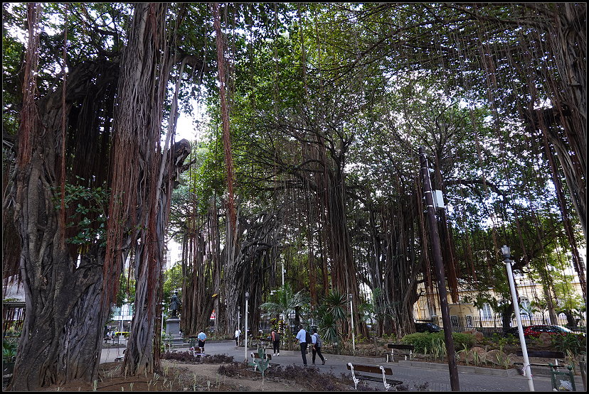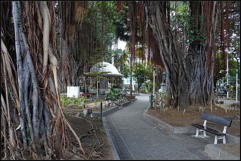 Direkt daneben befindet sich der Park „Les Jardins De La Compagnie“, in dem viele mächtige Banyanbäume stehen. Sie sind bekannt für ihre riesigen, weit ausladenden Kronen und die charakteristischen Luftwurzeln, die von den Ästen herabhängen und mit der Zeit zu neuen Stämmen werden. So kann ein einziger Banyanbaum eine Fläche von mehreren Hektar einnehmen und sich wie ein kleines Waldstück anfühlen.