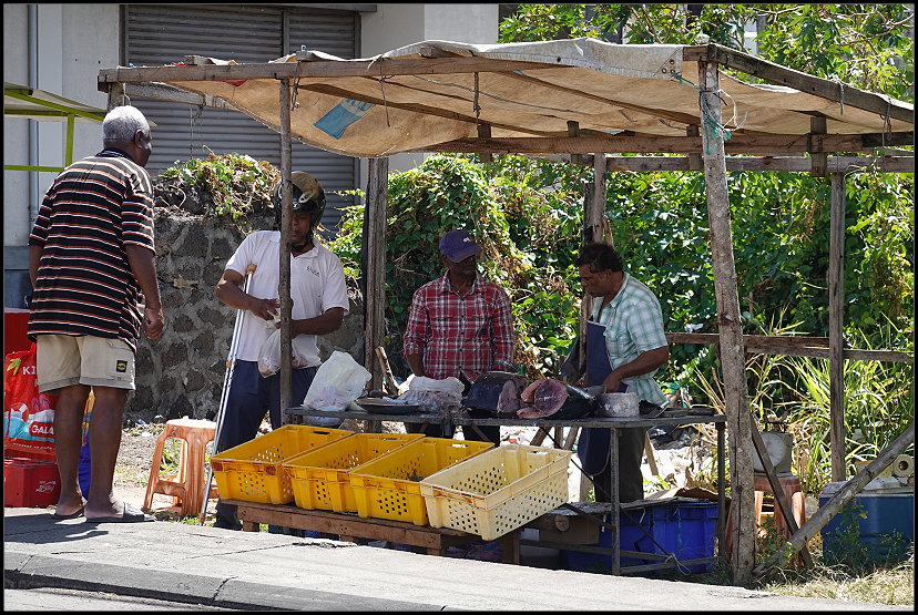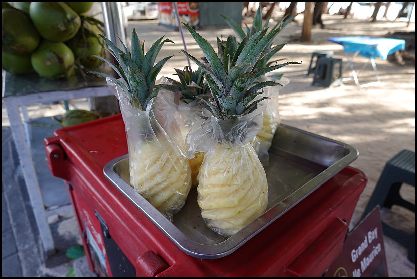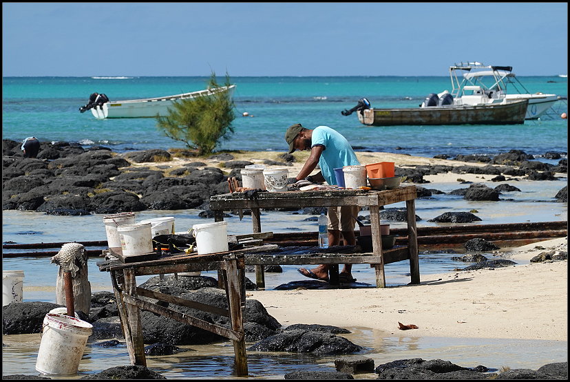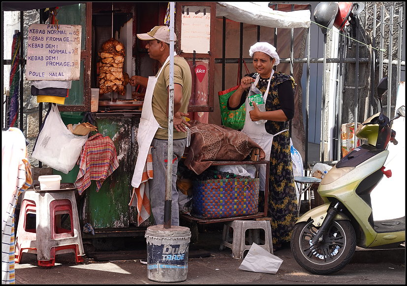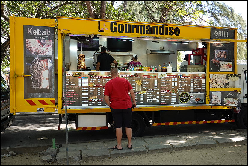 In Grand Baie herrschte dann wirklich ein totales Kontrastprogramm zu Goodlands. Überall Touristen, Touri-Läden in denen handgefertigte Souvenirs, bunte Kleidung und lokale Kunstwerke angeboten wurden und dazu verschiedene Freizeitangebote. Ein wenig schlenderten wir durch die Läden und fanden dann etwas abseits eine kleine einfache Garküche, wo wir leckere Dumplings aßen.