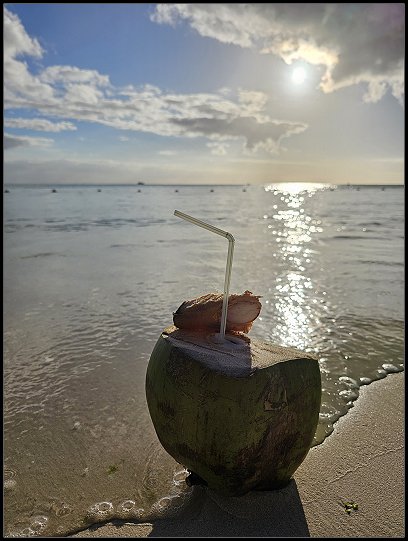 Mit einer Kokosnuss in der Hand schlenderten wir am Strand entlang und genossen es, einfach dort zu sein.