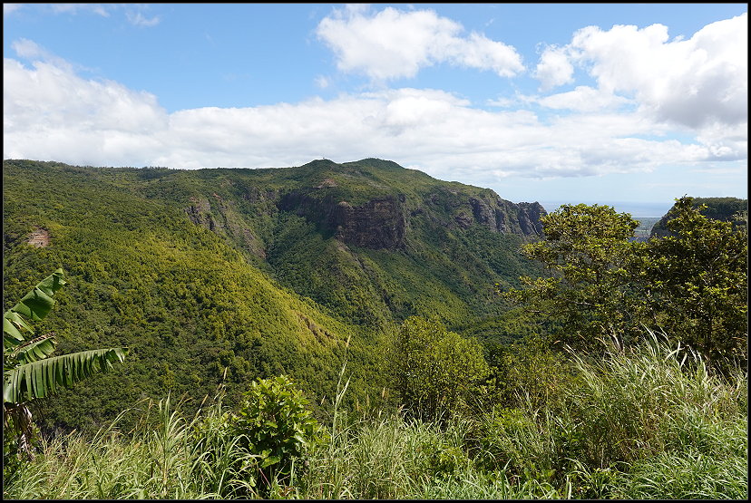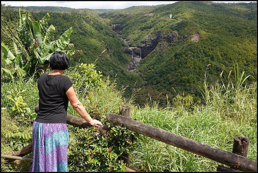 Als wir dort ankamen, bot sich uns ein überwältigender Anblick: Tief unter uns erstreckte sich ein dicht bewaldetes Tal, aus dem die Tamarind Falls hervorstachen. In mehreren Kaskaden stürzte das Wasser in die Tiefe, umgeben von üppiger Vegetation und steilen Felswänden. Die Szenerie erinnerte uns sofort an die wunderschönen Landschaften Hawaiis.