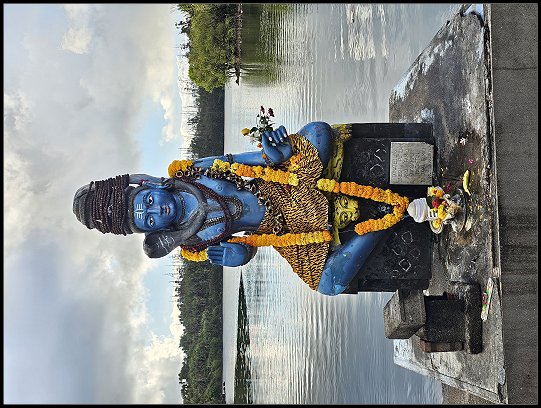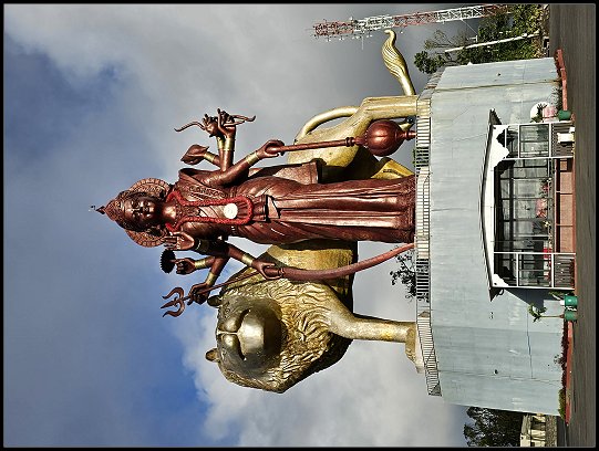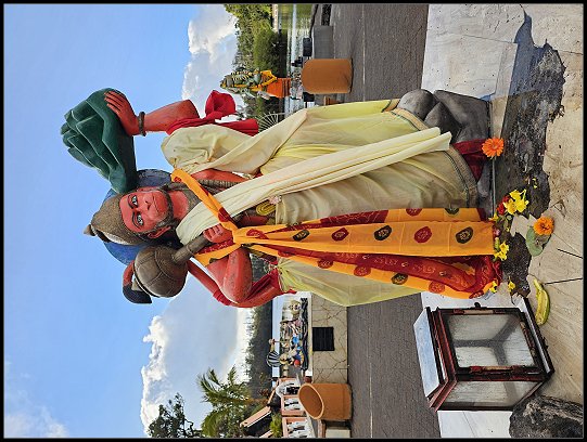 Am Eingang des Tempelkomplexes empfing uns die gewaltige, 33 Meter hohe Statue des Gottes Shiva. Neben Shiva erhob sich eine ebenso prächtige und genauso große Statue der Göttin Durga Maa Bhavani. Diese monumentalen Statuen symbolisieren den Schutz und die göttliche Präsenz, die die Gläubigen hier verspüren.