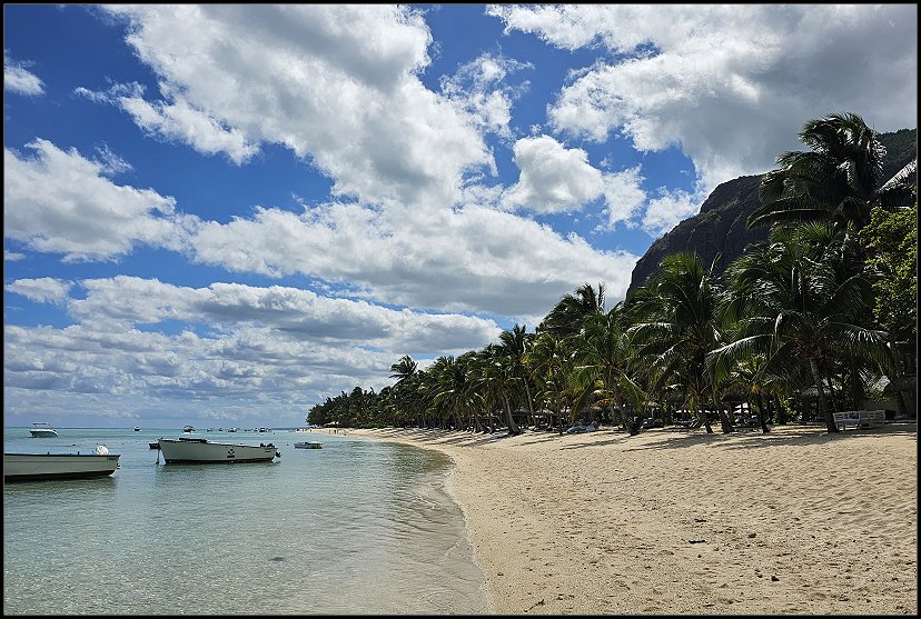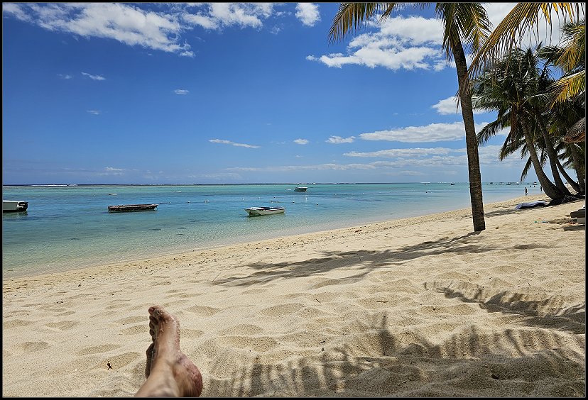 Da es Tom immer noch nicht besser ging, blieben wir den Vormittag im Hotel. Er relaxte auf einer Liege am Strand, während ich den Strand etwas entlangschlenderte. Mit seinem türkisblauen Wasser, dem weißen Sand und dem majestätischen Le Morne Brabant als Kulisse ist dieser Küstenabschnitt wirklich das Sahnestückchen der Insel.