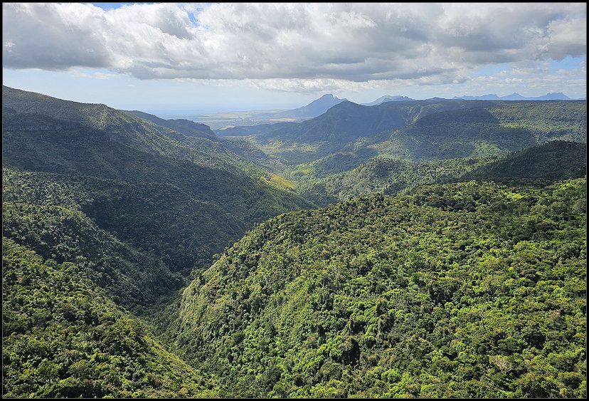 Nachdem wir am Parkplatz angekommen und an einigen Souvenirständen vorbeigeschlendert waren, bot sich uns ein unvergleichlicher Blick auf den Black River Gorges National Park.