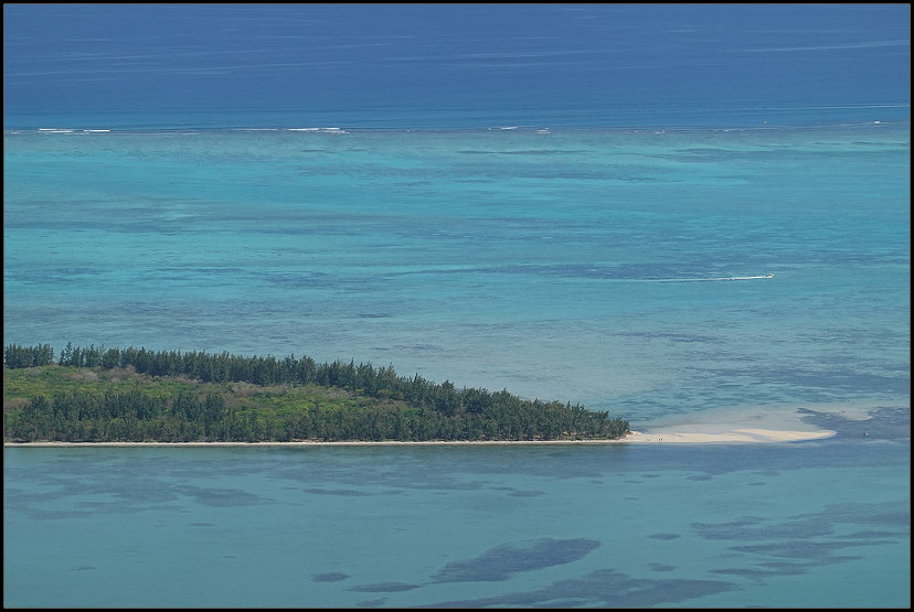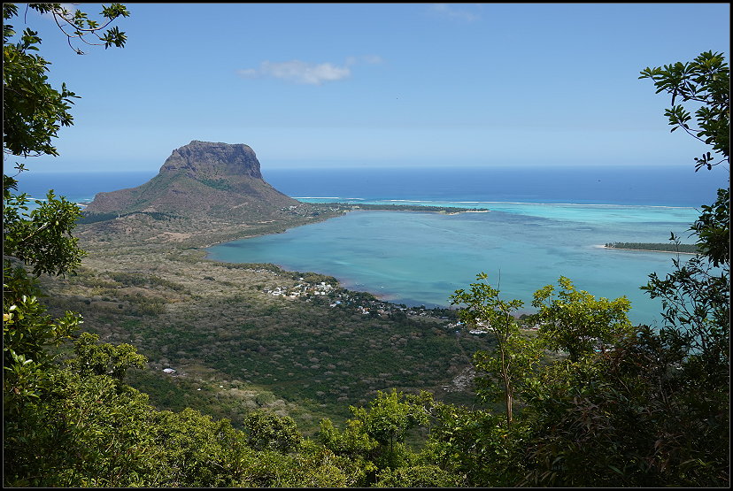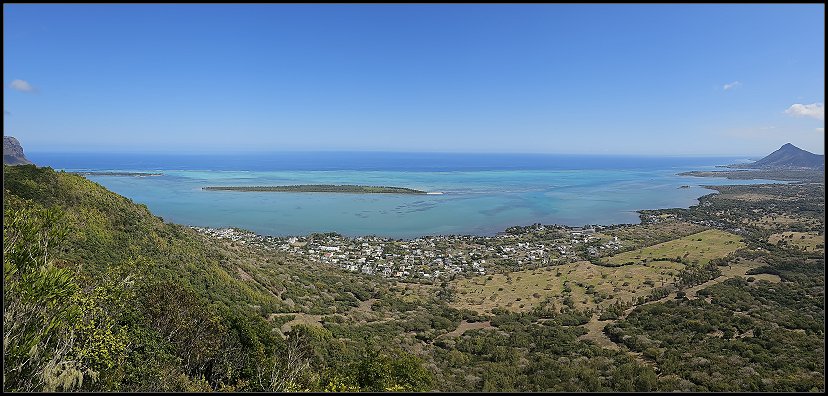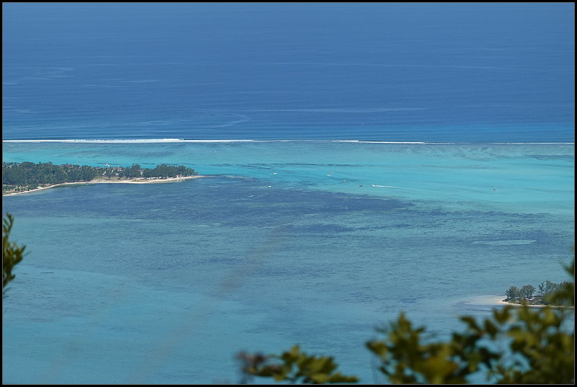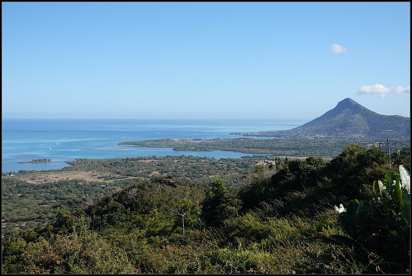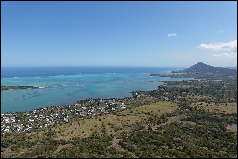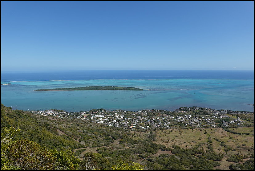 Nach genau einer Stunde erreichte ich nassgeschwitzt den Sublim Point und war für einen kurzen Moment sprachlos. Wow! Der Name ist Programm: Von hier bot sich mir ein atemberaubender Blick über die grüne Hügellandschaft, die sich bis zur Küste erstreckte. Die Lagunen und Riffkämme des Indischen Ozeans leuchteten in schillernden Blautönen. Was für ein Panorama!