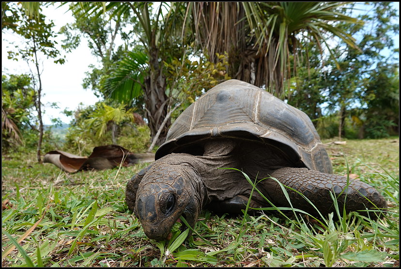 Auf dem Hinweg entschied ich mich für den asphaltierten Weg, was rückblickend eine gute Wahl war. Unterwegs begegnete ich drei Mauritius-Riesenschildkröten, die dort in freier Wildbahn leben und Teil von Wiederherstellungs- und Schutzprogrammen sind. Diese Art, die einst durch Überjagung und den Verlust ihres Lebensraums fast ausstarb, wird aktiv geschützt und gezielt gezüchtet, um ihre Bestände zu erhöhen.