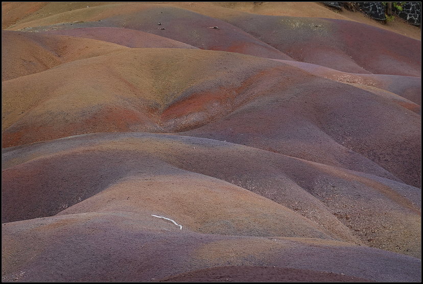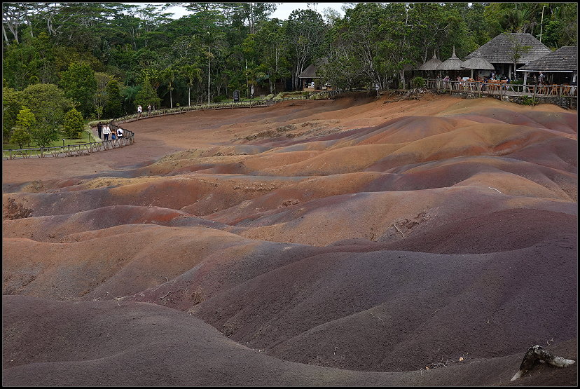 Zurück im Visitor Center kaufte ich einen schönen Bilderrahmen als Andenken und machte mich dann auf die Weiterfahrt. Nachdem ich mir noch einmal kurz die Chamarel-Wasserfälle angeschaut hatte, düste ich zur „siebenfarbigen Erde“ (550 MUR; 10,70 €).