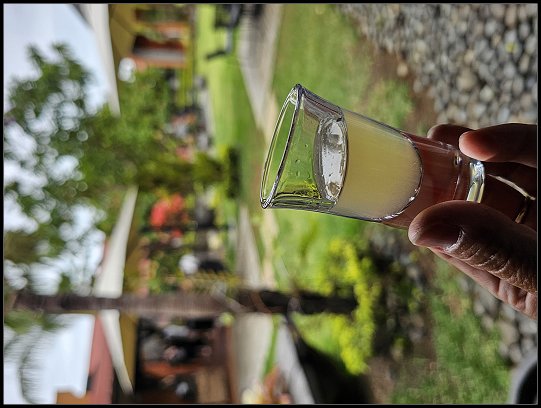 Als die Leute in der kleinen Bar hinter mir mit ihren Vorbereitungen fertig waren, bestellte ich einen Tamarindensaft. Tamarind ist die Frucht des Tamarindenbaums, eines tropischen Baumes, der hauptsächlich in Afrika, Indien und anderen warmen Regionen wächst. Die Tamarindenschote ist braun und enthält ein klebriges Fruchtfleisch, das einen säuerlichen bis süß-sauren Geschmack hat. Mir hat der Saft gut geschmeckt!