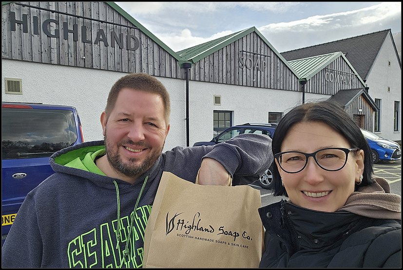 Apropos dreckig… Neben „Morrisons“ gab es doch eine Waschanlage, oder? Für 8 £ wurde der Kleine mal gründlich gereinigt. Nach einem schnellen Einkauf im „Morrisons“ ging es dann endlich… Ach, nee! Wir wollten ja noch kurz zur „Highland Soap Company“. Ein Freund und meine Mama hatten meinen Status mit den Bildern von dort gesehen und Bedarf angemeldet. Blöd, dann „mussten“ wir natürlich auch noch etwas kaufen! *ggg*