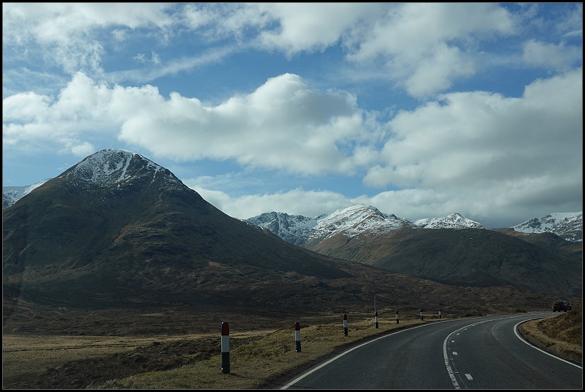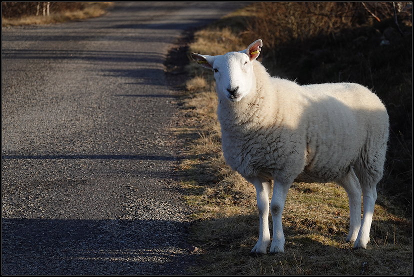 Eine Stunde später setzten wir unsere Fahrt fort. Die Sonne stets im Rücken ließ es sich super fahren. Allerdings vermissten wir die Highland Cattle. Bei unseren vorherigen Fahrten dort hatten wir immer welche gesehen. Schade…!
