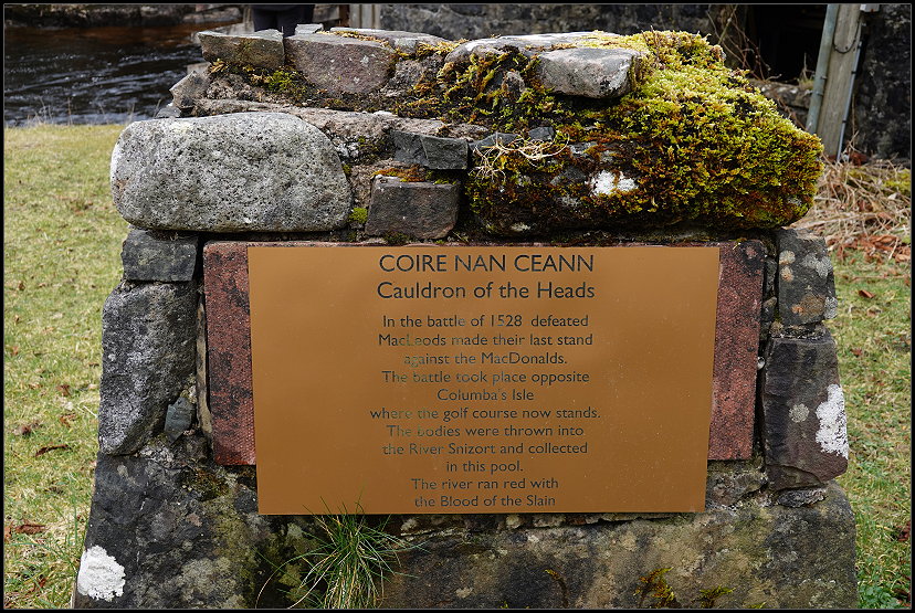 Auf der kleinen Insel mitten im Fluss Snizort stand zwischen 1079 und 1498 die Kathedralkirche des Bishop of the Isles. Gemäß der Überlieferung wurde die Kathedrale an einem Ort errichtet, an dem Columba, ein irischer Abt und Missionsevangelist, der das Kloster auf Iona gründete, von einem Felsen aus predigte. Dieser Felsen wurde später als St. Columbas Fels bekannt.