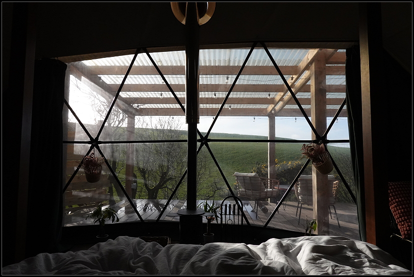 In der Nacht war es schön warm unter der dicken Bettdecke gewesen. Jedes Körperteil, das diesen Bereich jedoch verlassen hatte, setzte leichte Eiskristalle an… *brrrr* Der Wind rüttelte die ganze Nacht an der Plane und weckte uns ein paar Mal auf. Unsere schöne Unterkunft war halt doch einfach nur ein Zelt. Aber es war so toll, morgens die Vögel, Kühe und Schafe draußen zu hören und sie vom Bett aus auf der Wiese zu beobachten.