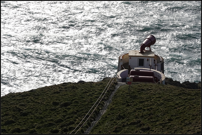 Der Leuchtturm ist seit 1988 unbemannt und wird heute elektrisch betrieben. Eine lange, weiße Mauer erstreckt sich hinter dem Leuchtturm, die den Garten umgibt, in dem einst Gemüse angebaut wurde, um den früheren Leuchtturmwärter zu versorgen. Über mehrere Stufen hinab gelangten wir schließlich auch noch zum roten Nebelhorn.