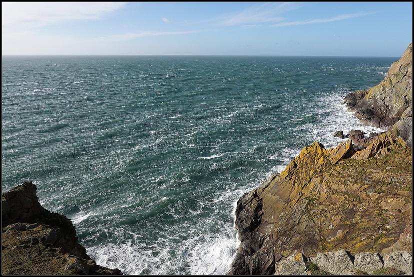 Ein kräftiger Wind empfing uns am 1830 erbauten Leuchtturm. So zog ich direkt mal meine beheizbare Weste unter der dicken Winterjacke an. Mit Mütze auf dem Kopf ging es dann los auf den Rundweg entlang der steilen Küste.