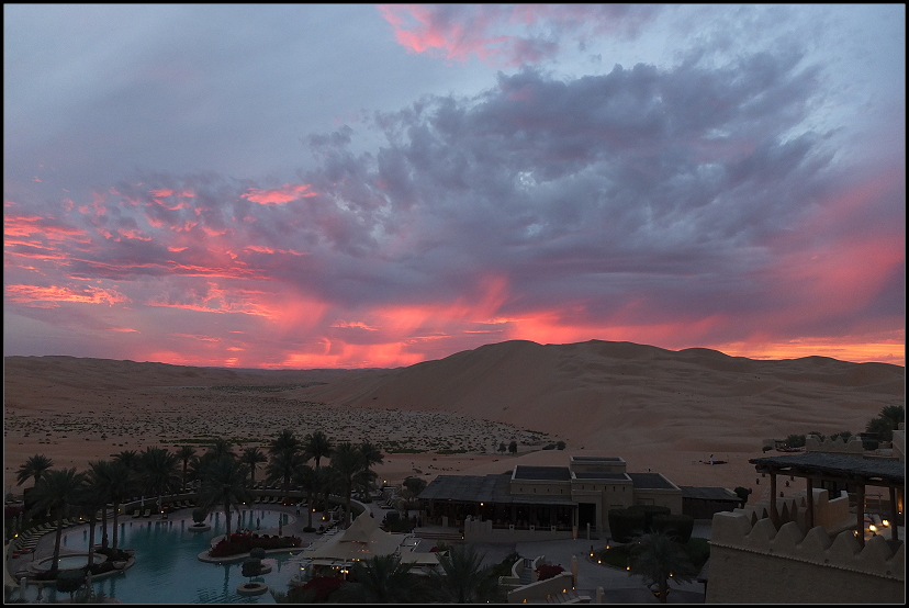An der kleinen Promenade des Eastern Mangroves Hotel schlenderten wir dem traumhaften Sonnenuntergang entgegen.