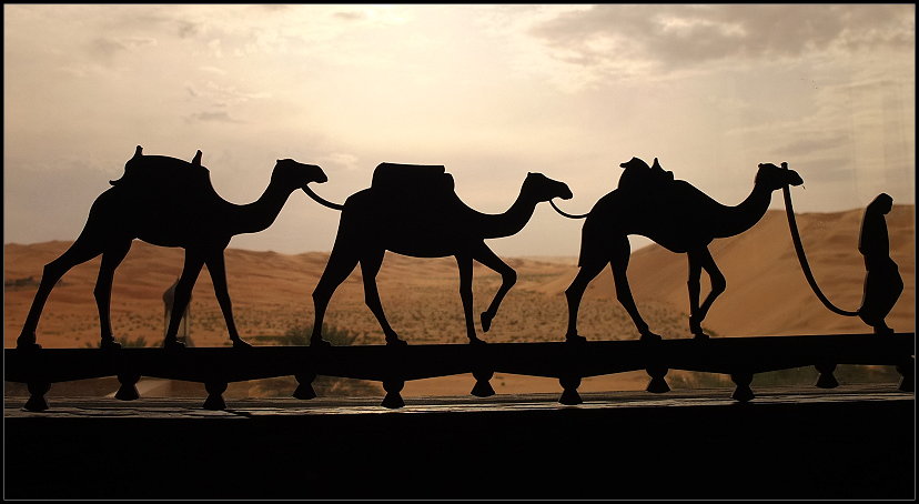 Langsam und gemächlich trotteten wir im Konvoi durch den brennend heißen Wüstensand. *träller*