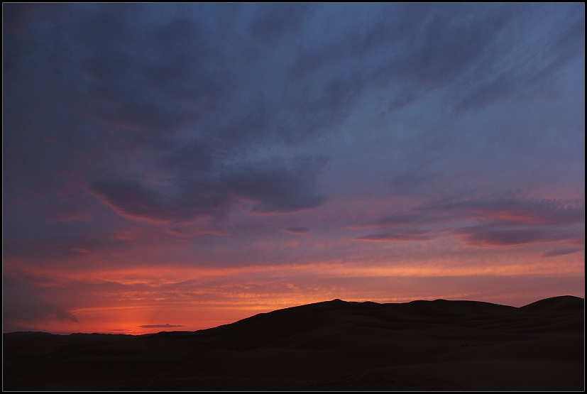 Unglaublich, wie viele verschiedene Farben Sand haben kann und wie fein er sein kann. Wir konnten uns gar nicht satt sehen. Und dank der vielen Sendemasten, die alle paar Kilometer standen, hatten wir auch vollen Handyempfang. Nicht, dass wir den gebraucht hätten…