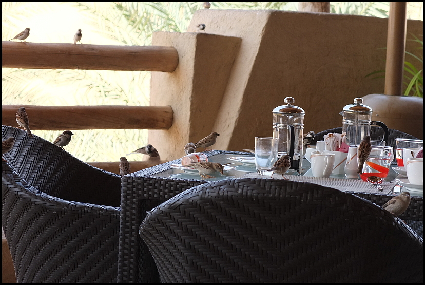 Erst um 8:00 Uhr quälten wir uns aus den Betten. Was hatten wir gut geschlafen. An dem tollen Frühstücksbuffet schlemmten wir uns noch mal durch die Leckereien und genossen das Sitzen auf der schattigen Außenterrasse. Die vielen Spatzen hatten ihre Freude an den noch auf den Tischen liegenden Speiseresten und ließen sich nur schwer verscheuchen.