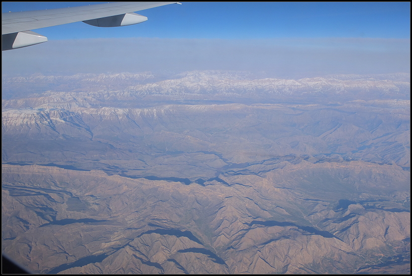 Die Mahlzeit war wieder lecker, wobei sie die vom Hinflug nicht toppen konnte. Genüsslich mümmelten wir vor uns hin und hatten dabei einen herrlichen Blick auf den Iran.