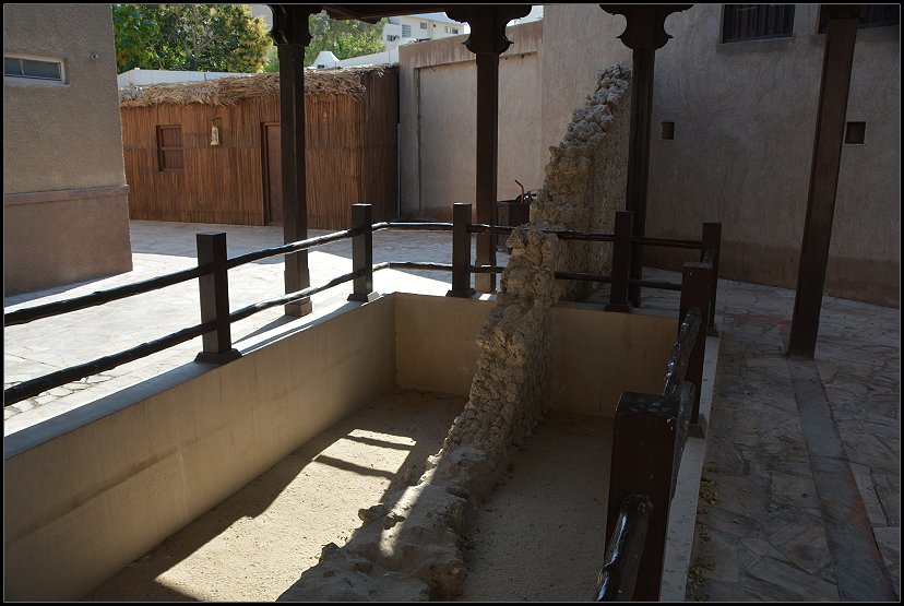 Ein paar Straßen weiter statteten wir dem Dubai Museum im Al Fahidi Fort einen Besuch ab (3 AED, 0,72 €). Das Fort wurde 1787 aus Lehm, Korallenblöcken und Muschelschalen, vermischt mit einem Brei aus Kalk, erbaut. Es ist das älteste noch stehende Bauwerk der Stadt.