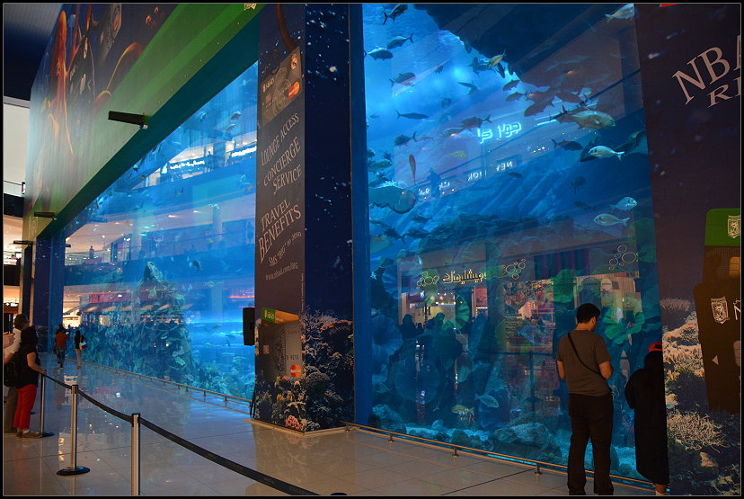 Wahnsinn, in der großzügigen Mall kann man sich wirklich verlaufen. Neben vielen kleinen Läden und großen Luxusgeschäften gibt es auch eine Eislaufbahn mit den Maßen eines Eishockeyfeldes, hunderte Restaurants (sogar „Nordsee“) und ein riesiges Aquarium mit Haien und Rochen, in dem man sogar tauchen kann. Mit seinen 10 Millionen Litern ist es eines der größten Aquarienbecken der Welt – klar! Dort war es wirklich spürbar, das Geld, der Überfluss und der Reichtum.
