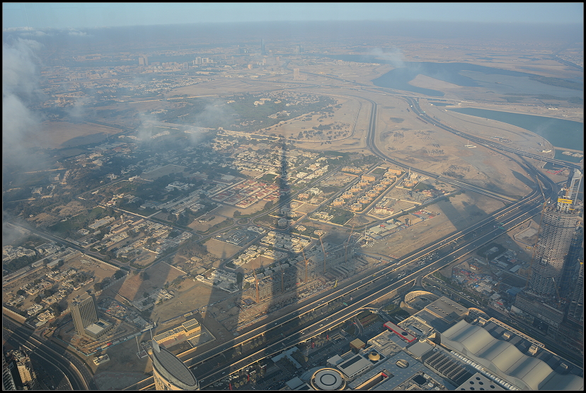Am Ende der Mall traten wir ins Freie und erblickten rechts natürlich sofort den Burj Khalifa, das mit 828 m momentan höchste Gebäude der Welt. Darin befinden sich zahlreiche luxuriöse Wohn- und Gewerberäume sowie das schicke Armani Hotel Dubai. Neben dem Weltrekord für das höchste Bauwerk hält das Gebäude auch den Rekord für das höchste Restaurant (auf 422 m) und die höchste Outdoor-Aussichtsplattform (auf 555 m) der Welt.
