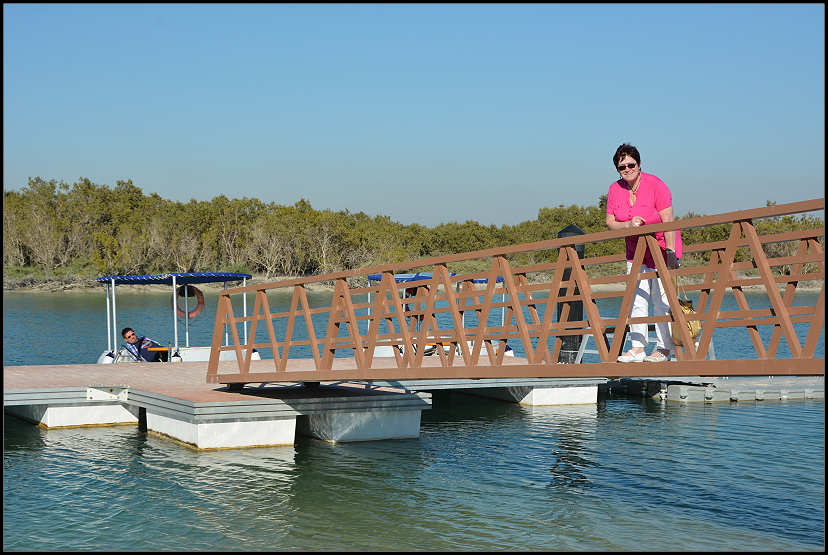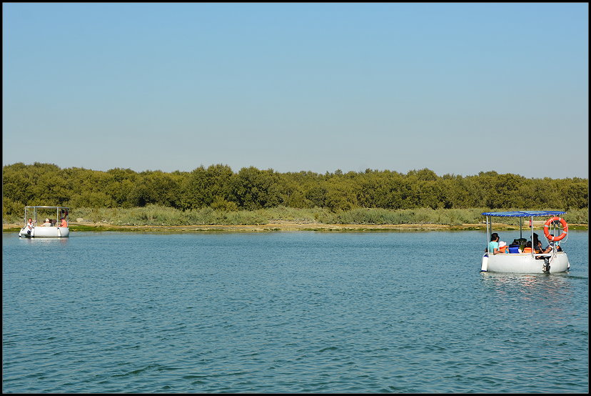 Am frühen Nachmittag ließen wir über den Hotel-Concierge einen Eco-Donut reservieren. Mit diesen solarbetriebenen Booten kann man in Ruhe auf den Wassern rund um die Mangroven schippern. Ja, Mangroven! Abu Dhabi hat dicht an der Küste wachsende Mangrovenwälder, die ein einzigartiges Ökosystem sind.