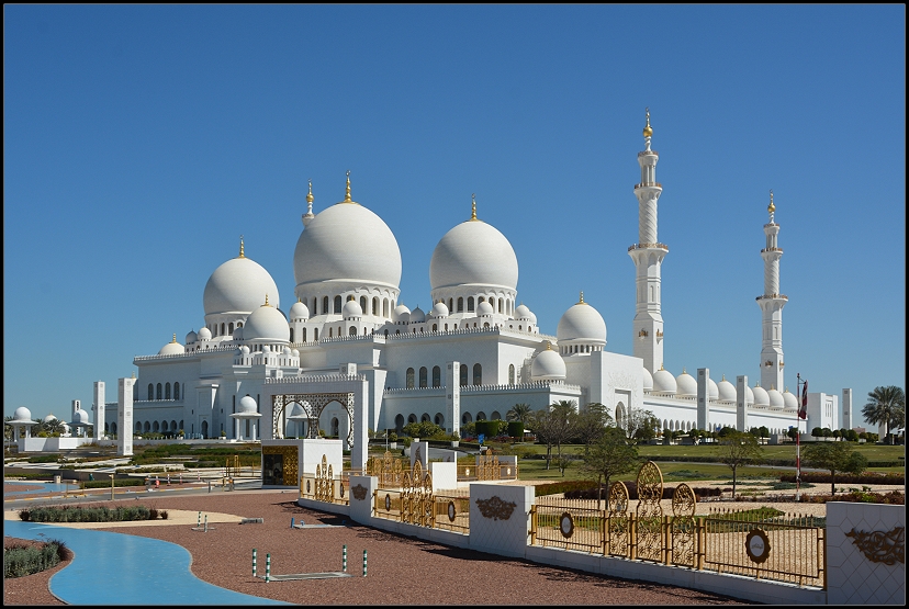 Nach einem kurzen Toilettenstopp in der Marina Mall brachte uns ein Taxi zur Sheikh Zayed Moschee. Sie ist die größte Moschee der VAE und die achtgrößte der Welt. 40.000 Gläubige finden dort Platz. Ihre Hauptkuppel hat einen Durchmesser von 32 Metern und gilt als größte Moscheenkuppel der Welt. Und wir wären nicht in den VAE, wenn dort nicht auch der größte handgeknüpfte Teppich der Welt liegen und der größte Kronleuchter der Welt hängen würde. Letzterer wurde übrigens in Deutschland gefertigt.