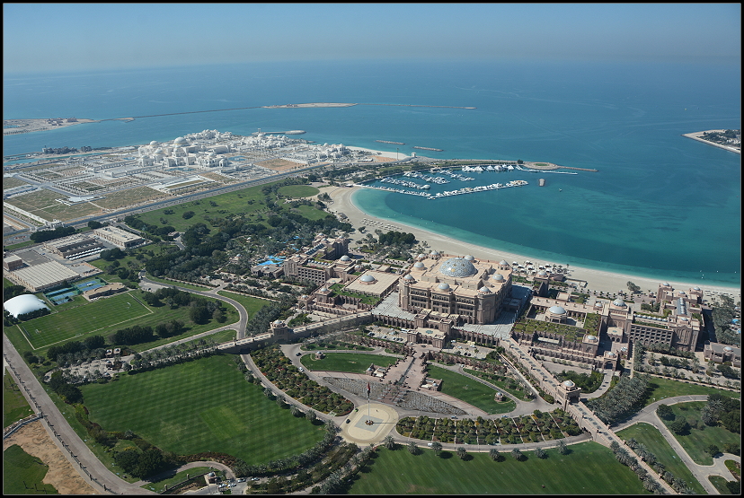 Gegen 16:45 Uhr machten wir uns auf zur letzten Verabredung des Tages. Ich hatte vor Wochen einen Tisch im Emirates Palace reserviert. Wir hatten uns dafür extra etwas in Schale geworfen. Ursprünglich wurde das Hotel von der Herrscherfamilie Abu Dhabis für ein Zusammentreffen aller Scheichs der VAE errichtet. Die Baukosten betrugen schlappe 3 Milliarden Dollar. Ein paar Wochen vor dem geplanten Treffen verstarb leider der gastgebende Scheich und das Treffen fand woanders statt. Seither wird der „Palast“ als Luxushotel genutzt.