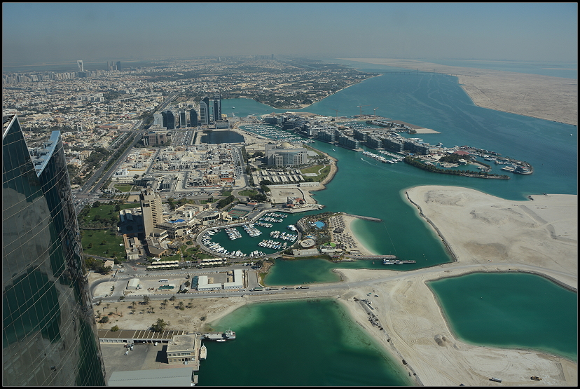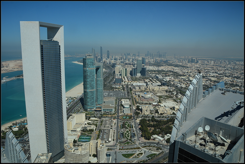 Mit einem Taxi ließen wir uns zu den Etihad Towers bringen. Dort auf 300 Metern Höhe gibt es ein Observation Deck. Mit dem Big-Bus-Ticket kostete uns der Eintritt pro Person 35 AED (8,70 €), sonst 75 AED (aber wohl mit Verzehrgutschein?!).