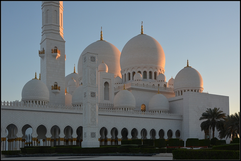 Fertig angezogen durften wir das prachtvolle Gelände betreten und wussten gar nicht, wo wir zuerst hinschauen sollten. Überall weißer Marmor, funkelndes Blattgold und kunstvolle Wandbemalungen. Ein Traum aus 1001 Nacht, wunderschön! Ich konnte mich gar nicht satt sehen und schoss unendlich viele Fotos.