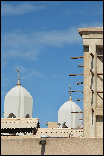Erst zwei Stunden später machten wir uns schweren Herzens wieder auf und erkundeten das himmlisch ruhige Bastakiya-Viertel. Langsam spazierten wir durch die einsamen Gassen und schauten uns in den wenigen Geschäften um, ohne vollgebrabbelt zu werden. So viel Ruhe seitens der Verkäufer wurde von uns mit einem großzügigen Einkauf belohnt.